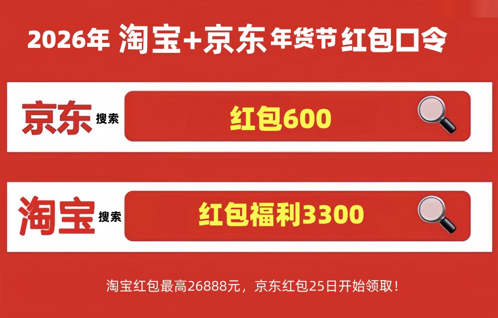 淘宝平台有两个主要红包口令,一个是“红包福利3300”,另一个是“天降红包3900”。用户每天拥有三次抽取机会,抽取时最高能够获得26888元的无门槛红包。1月19日、21日、24日以及除夕当天,平台会开展额外的红包加码活动,该活动优惠力度比较大。